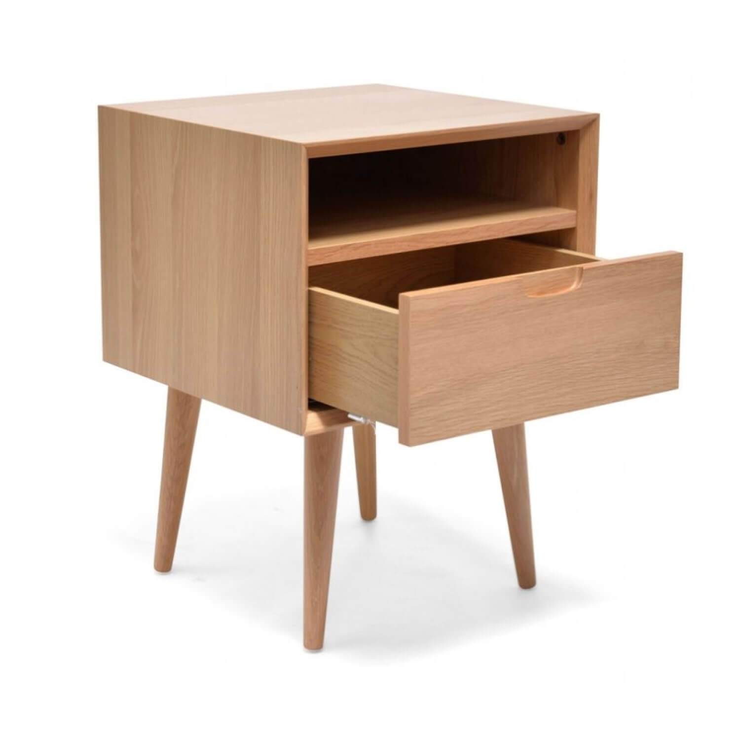 Add clean lines & geometric forms to your Living Room or Bedroom with the modern and minimalist design of the Henson Oak Wood Bedside & Side Table.